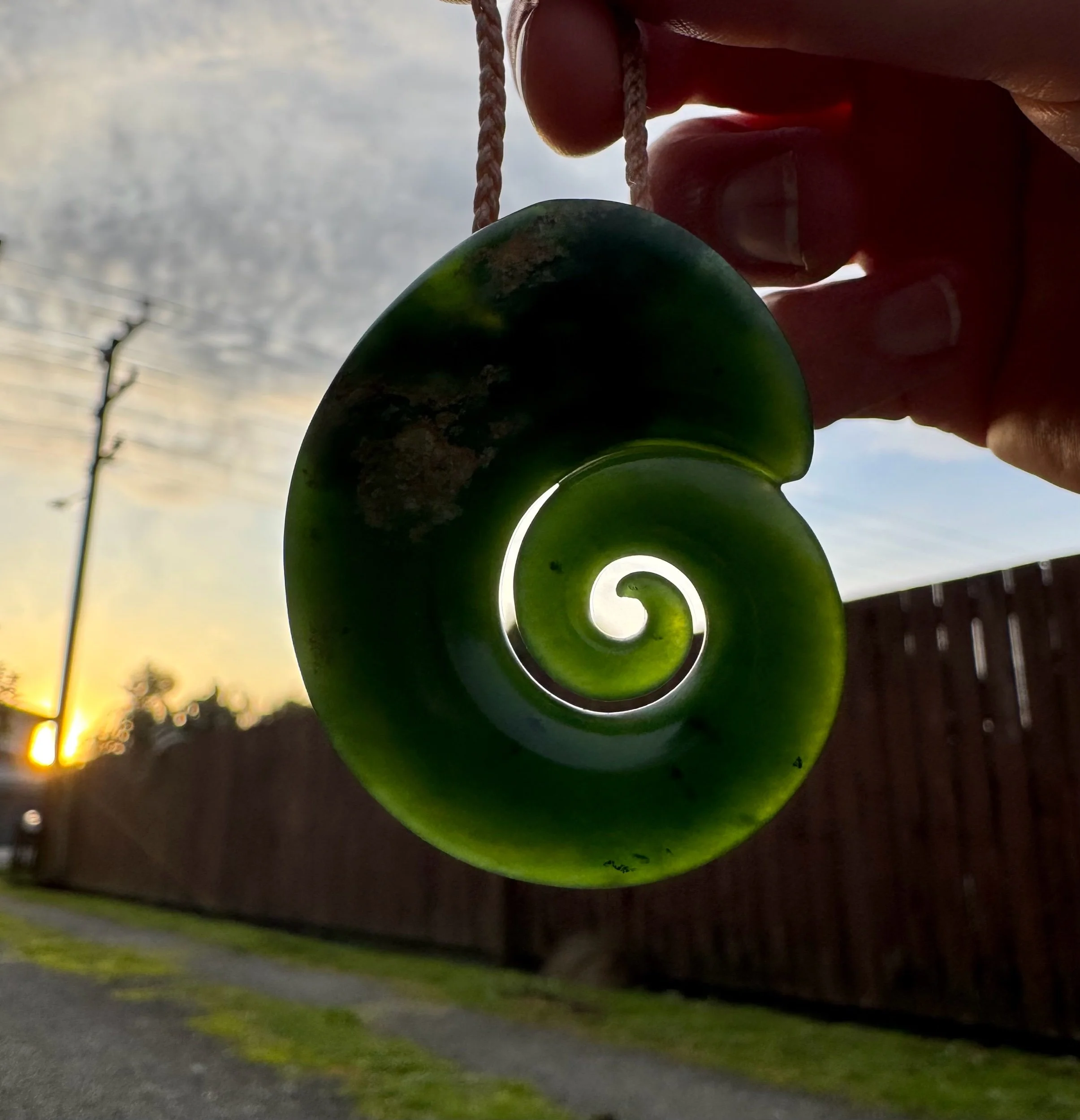 Categories: All Pendants Earrings Scuplture All / Pendants Koru Pendant Kārearea/New Zealand Falcon Pendant Ruru/Morepork Pendant Texture Oval - Ripples Specimen Large Toki Specimen Flower jade Breastplate Thin Chisel-style Toki Water Pattern - Oval Pendant Double koru large disc pendant Texture Toki - Flow